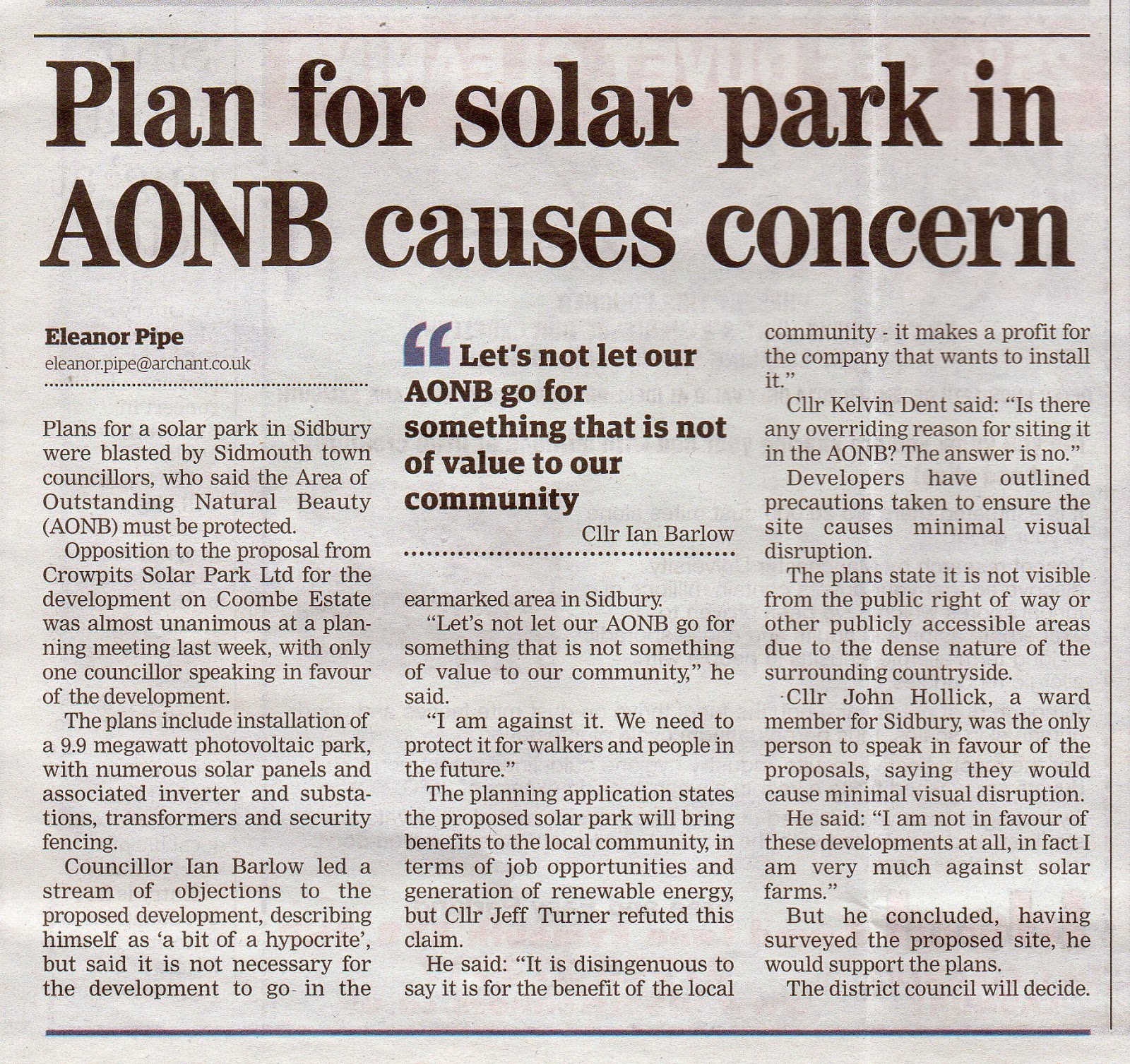 Futures Forum: Solar Plan for Sidmouth: another application rejectedRecently, the Environment Minister has shown her opposition to solar farms: